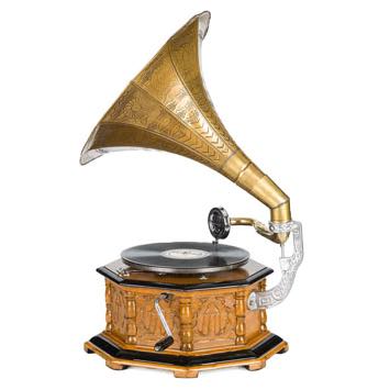 Gramophone avec pavillon pour disque 78 tours style antique rond (h2)