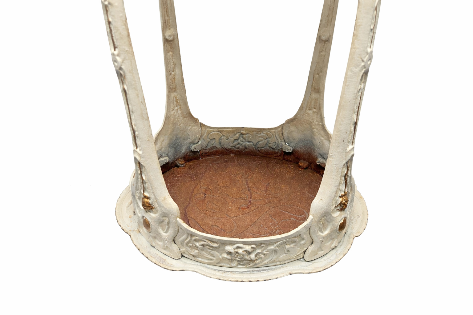 Belle et table massive en fonte, fait style antique Art Neuf. Comme dans les photos pour voir une haute qualité, travaux de décoration dans un style ancien. En consommant handwork des produits traditionnellement traité pour obtenir un aspect antique. Ceci a pour conséquence que la patine, rouille et les signes de l'âge sont délibérées. Il existe des différences mineures. La couleur est pas leuchtenedes blanc, mais est un style antique blanc sombre. Il est adapté pour votre salon ou terrasse et jardin. Les dimensions sont les suivantes: largeur 47cm, hauteur 60cm, profondeur 37cm. Le poids est 11,5 kg.