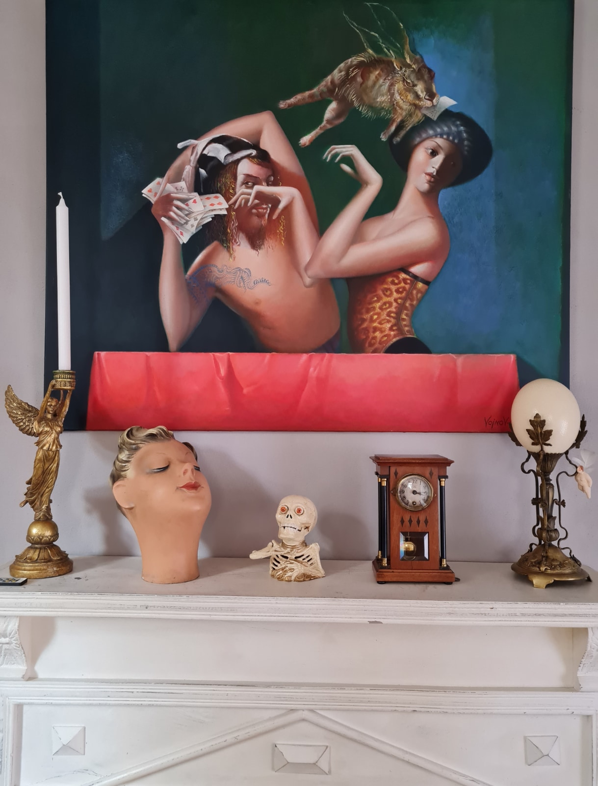 Magnifique tirelire tête de mort résistante en fer, reproduite d`après un modèle ancien. Un article décoratif de grande valeur au style antique, comme vous pouvez le constater sur les photos. À la fin du processus de fabrication, l`article a été travaillé à la main de façon traditionnelle, pour conserver une apparence antique. Cela signifie que la patine ou les traces d`ancienneté sont voulues. Chaque objet est de cette façon unique. Une manivelle située sur le côté permet à la main de se lever et aux yeux de sortir de leur orbite. La bouche s`ouvre, et la pièce s`engouffre dans la gorge du squelette. Les dimensions sont les suivantes : H 17 x l 15 x P 15 cm. Cette tirelire est parfaite pour les collectionneurs d`objets gothiques ou du moyen-âge, ainsi que pour tout ce qui a trait à l`ésotérisme, le mystique ou la magie. La tirelire n`est pas un jouet, il s`agit simplement d`un élément de décoration. Cet article est destiné aux collectionneurs à partir de 14 ans. Les éléments de décoration visibles sur les photos ne sont pas compris dans l`offre. Ils vous donnent une idée de la taille de l`article.